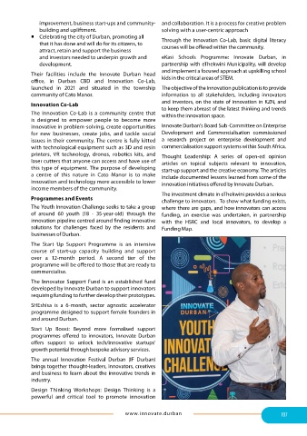 innovation and technology more accessible to lower innovation initiatives offered by Innovate Durban.