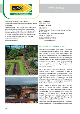 The Durban Botanic Gardens is a national and local City asset. promotion and marketing, identifying, attracting,