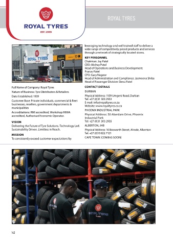 Customer Base: Private individuals, commercial & fleet E-mail: info@royaltyres.co.za