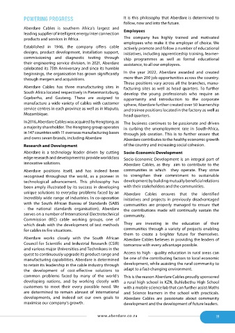 Aberdare works closely with the South African   Aberdare Cables believes in providing the leaders of