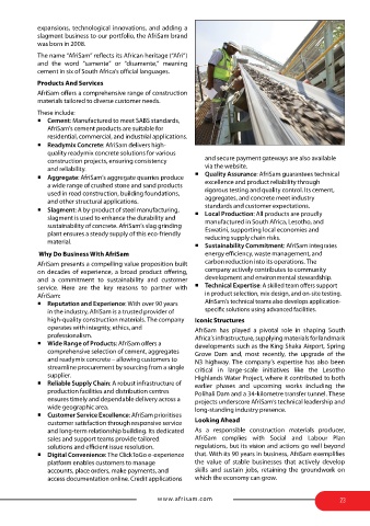 Wide Range of Products: AfriSam offers a    developments such as the King Shaka Airport, Spring