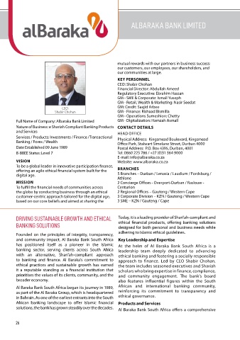 and community impact,  Al Baraka Bank  South  Africa   Key Leadership and Expertise