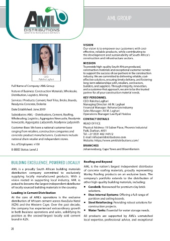 Subsidiaries: AML – Distributions, Cement, Roofing,   Operations Manager: Lee Ryall Naidoo