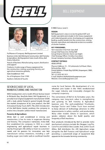 Auditors: Deloitte & Touche Website: www.bellequipment.com