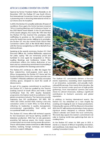uninterrupted service even during power disruptions. As the Durban ICC enters its 28th year in 2025, it
