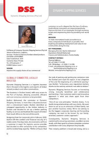 Full Name of Company: Dynamic Shipping Services (Pty) Ltd Managing Director: Bashini Mahomed