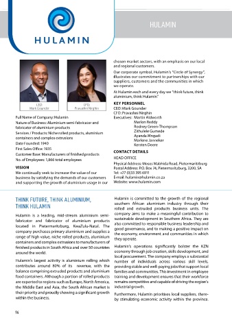 and supporting the growth of aluminium usage in our Website: www.hulamin.com