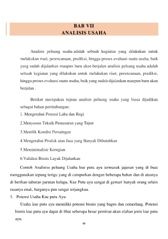 Contoh Analisiss peluang Usaha kue putu ayu termasuk jajanan yang di buat