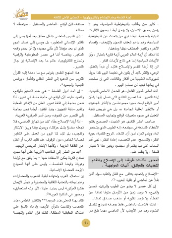 التعبي ـر.             اذن إذا أردنـا التقـدم والإصـاح فلابـد أن نبـدأ بالعقـل،