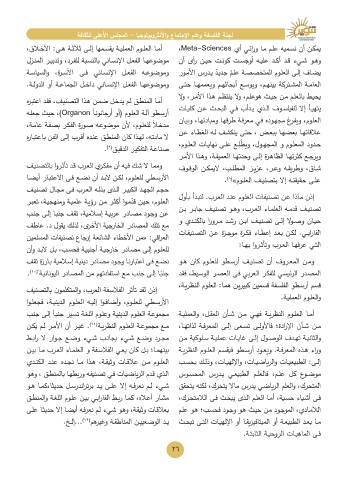 وممـا لا شـك فيـه أن مفكـري العـرب قـد تأثـروا بالتصنيـف علـى حقيقتـه إلا بتصنيـف العلـوم»(.)8