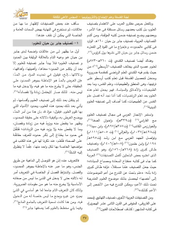 ليـس منـه .لذلـك صـار لايحتمـ ُل زيـادًة ولا نقصانـاً»(.)25 واسـتمر الإنجـاز العربـي فـى مجـال تصنيـف العلـوم