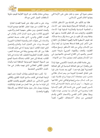 إلـى قـ ارءة مـا جـاء فـي هـذا العمـل مـن قضايـا وإشـكاليات تأسـيس الوجـود العربـي علـى قاعـدة أكثـر القيـم الإنسـانية