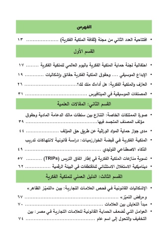 •افتتاحية العدد الثاني من مجلة (ثقافة الملكية الفكرية) 13 ....................