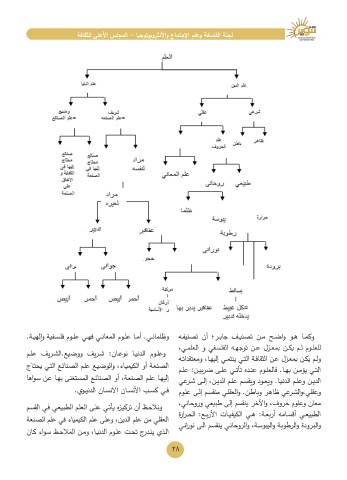 إليهـا علـم الصنعـة ،أو الصنائـع المسـتغنى بهـا عـن سـواها الديـن وعلـم الدنيـا .ويعـود ويقسـم علـم الديـن ،إلـى شـرعي