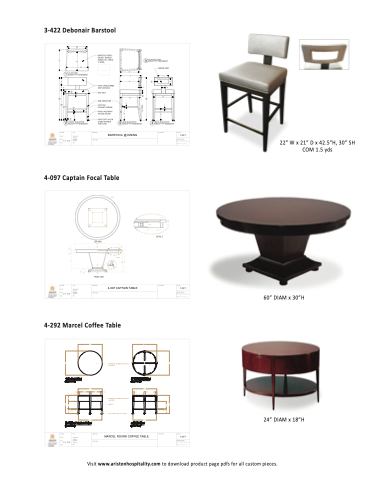 Visit www.aristonhospitality.com to download product page pdfs for all custom pieces.