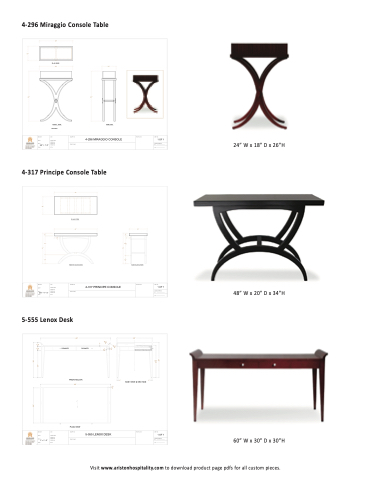 60” W x 30” D x 30”H Visit www.aristonhospitality.com to download product page pdfs for all custom pieces.