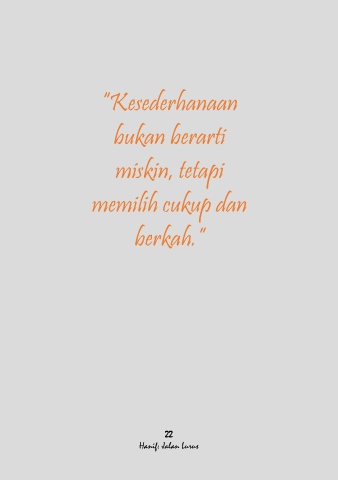 “Kesederhanaan bukan berarti miskin, tetapi memilih cukup dan berkah.” 22 Hanif: Jalan Lurus