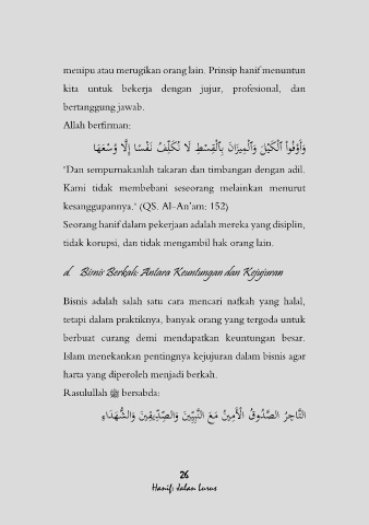 menipu atau merugikan orang lain. Prinsip hanif menuntun