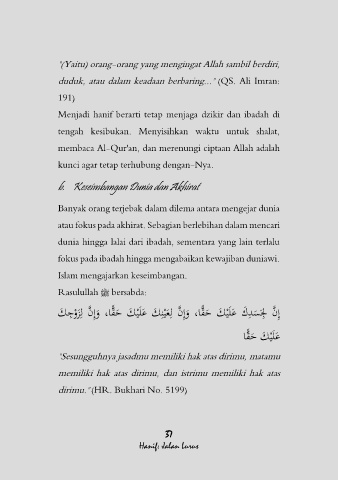 Menjadi hanif berarti tetap menjaga dzikir dan ibadah di