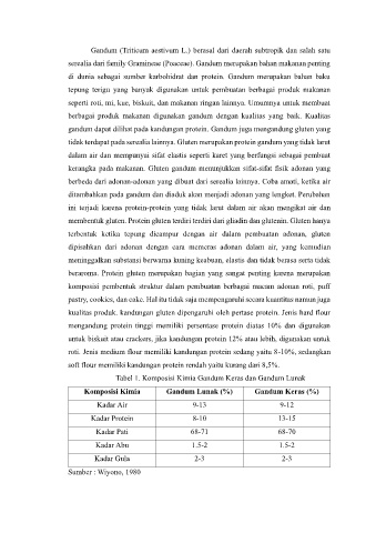 Tabel 1. Komposisi Kimia Gandum Keras dan Gandum Lunak