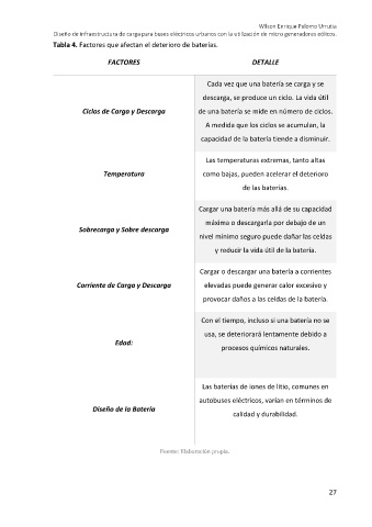 Tabla 4. Factores que afectan el deterioro de baterías.