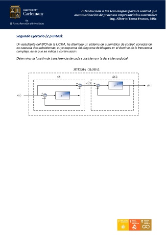 Determinar la función de transferencia de cada subsistema y la del sistema global.