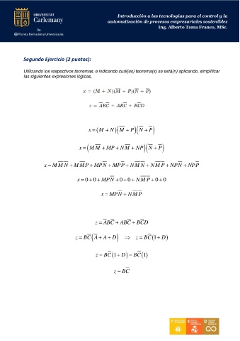 Utilizando los respectivos teoremas, e indicando cuál(es) teorema(s) se está(n) aplicando, simplificar