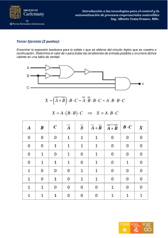 Encontrar la expresión booleana para la salida x que se obtiene del circuito lógico que se nuestra a