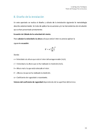 v = Velocidad a la altura que está el rotor del aerogenerador (m/s).