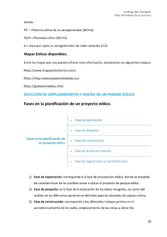1) Fase de exploración: corresponde a la fase de prospección eólica, donde se estudian