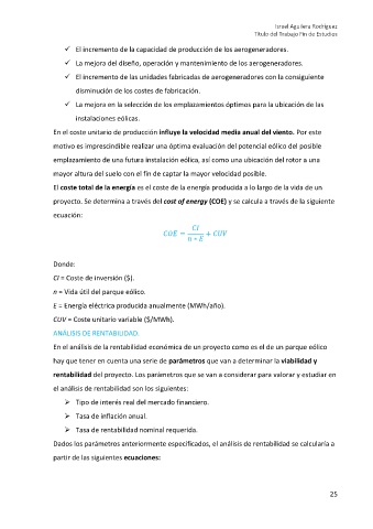 proyecto. Se determina a través del cost of energy (COE) y se calcula a través de la siguiente