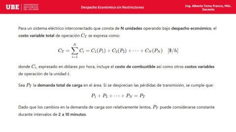 Despacho Económico sin Restricciones Ing. Alberto Tama Franco, MSc. Docente