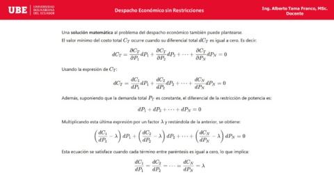 Despacho Económico sin Restricciones Ing. Alberto Tama Franco, MSc. Docente