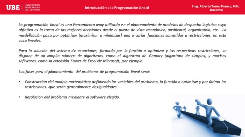 Introducción a la Programación Lineal Ing. Alberto Tama Franco, MSc.