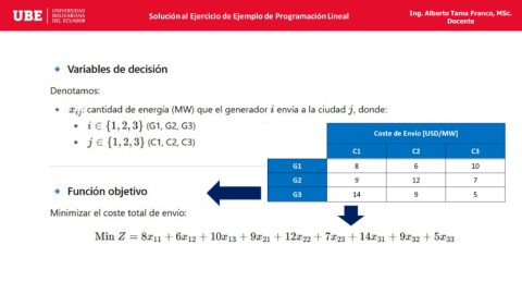 Solución al Ejercicio de Ejemplo de Programación Lineal Ing. Alberto Tama Franco, MSc. Docente