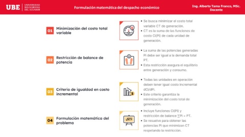 Formulación matemática del despacho económico Ing. Alberto Tama Franco, MSc. Docente