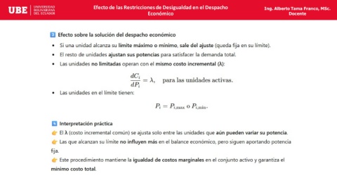 Efecto de las Restricciones de Desigualdad en el Despacho                                         Ing. Alberto Tama Franco, MSc.