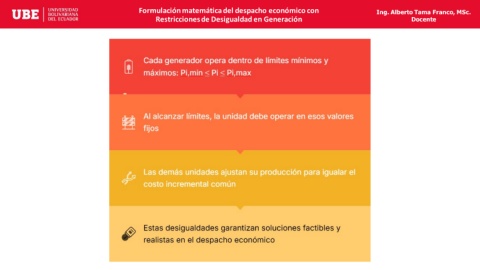 Formulación matemática del despacho económico con Ing. Alberto Tama Franco, MSc. Restricciones de Desigualdad en Generación Docente