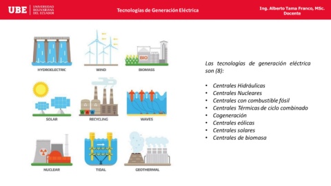 Tecnologías de Generación Eléctrica Ing. Alberto Tama Franco, MSc.