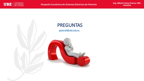Ing. Alberto Tama Franco, MSc. Despacho Económico de Sistemas Eléctricos de Potencia Docente PREGUNTAS gatamaf@ube.edu.ec