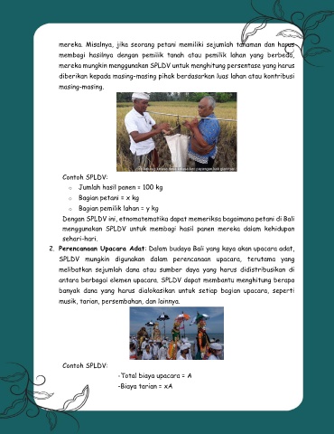 Dengan SPLDV ini, etnomatematika dapat memeriksa bagaimana petani di Bali