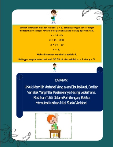 Setelah ditemukan nilai dari variabel y = 5, sekarang tinggal cari x dengan