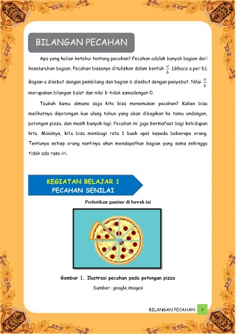 Gambar 1. Ilustrasi pecahan pada potongan pizza