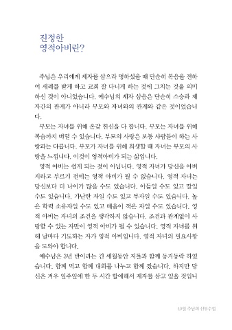 해 날마다 기도하는 자가 영적 아비입니다. 영적 자녀의 필요사항