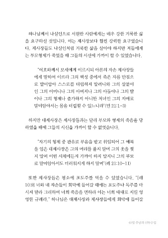 하지만 대제사장은 제사장들과는 달리 부모와 형제의 죽음을 당
