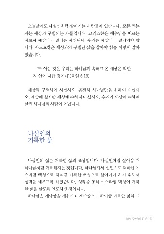 세상과 구별하여 사십시오. 온전히 하나님만을 위하여 사십시