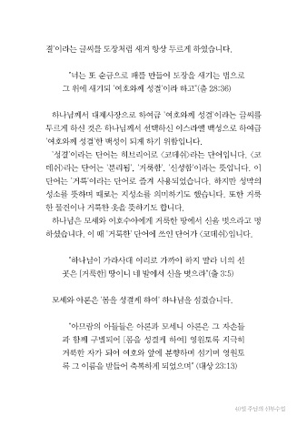 '성결'이라는 단어는 히브리어로 <코데쉬>라는 단어입니다. <코