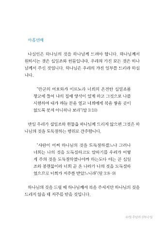 원하시는 것은 십일조와 헌물입니다. 우리의 가진 모든 것은 하나