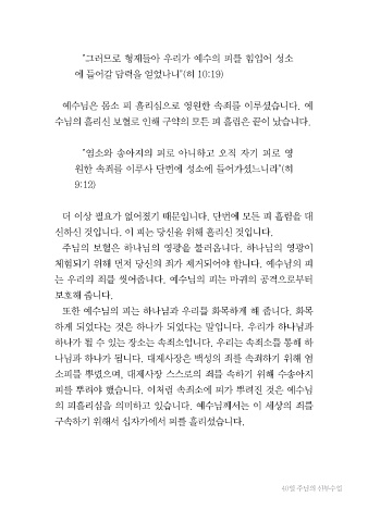 "염소와 송아지의 피로 아니하고 오직 자기 피로 영