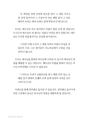 "그러면 이제 우리가 그 피를 인하여 의롭다 하심을 얻